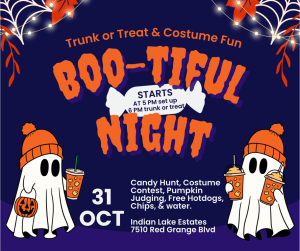 Hey everyone! Come on out to the ILE Clubhouse parking lot this Friday, October 31st at 5 PM to set up your carts or trunks for trunk or treat. The fun starts at 6 PM, and we’ll have plenty of free hotdogs, chips, and water to keep you energized. Don’t miss out on this awesome event!